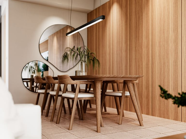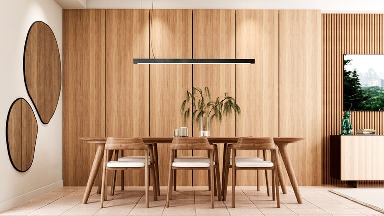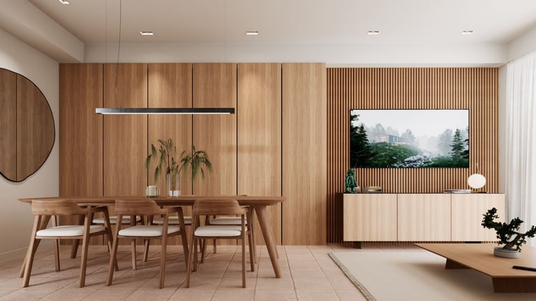 Una de las decisiones clave fue la elección de materiales. Se apostó por la madera en tonos cálidos y neutros para aportar confort, equilibrio y una sensación de hogar, contrastando con la condición previa del inmueble. Los materiales no solo cumplen una función estética, sino que ayudan a suavizar los espacios y a hacerlos más habitables.